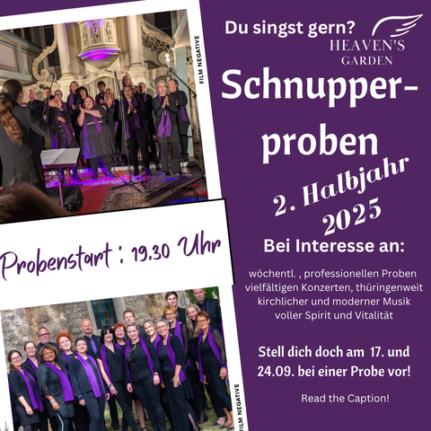 Komm zu unseren Schnupperproben am 17. und 24.09. und zeig uns danach am 01.10.25 beim Casting deine Stimme und deine Liebe zur Gospelmusik.